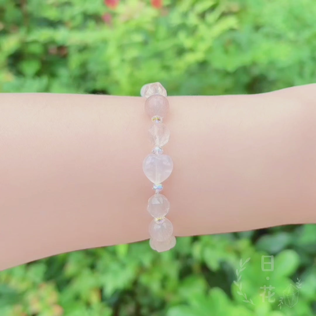 粉兔毛心形月亮石8.1mm水晶手鏈