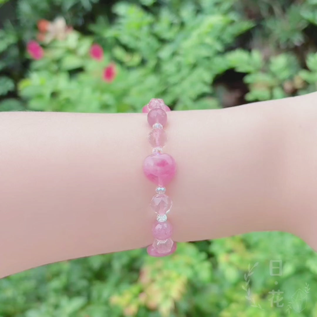 心形櫻花玫瑰石櫻花粉碧璽7.6mm水晶手鏈