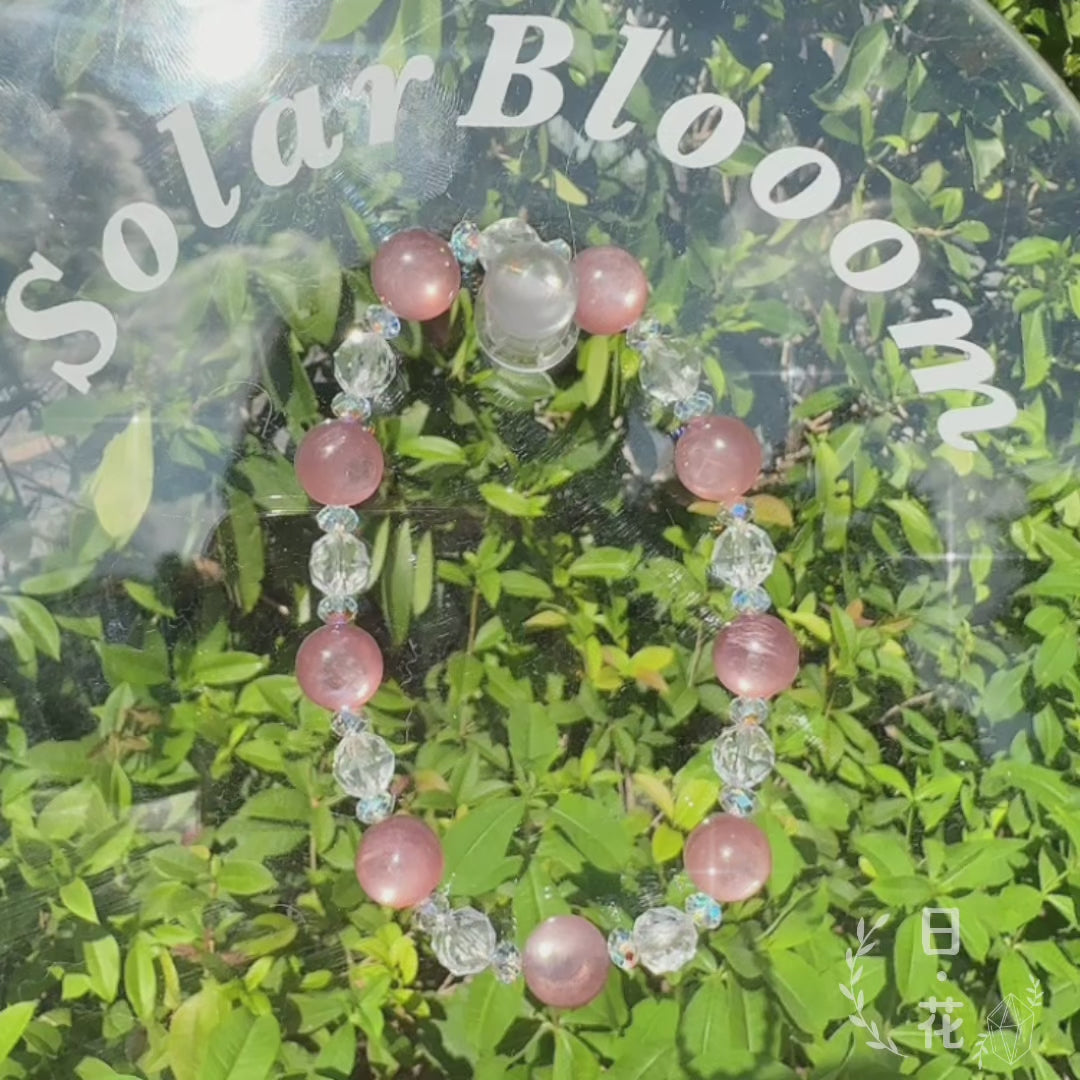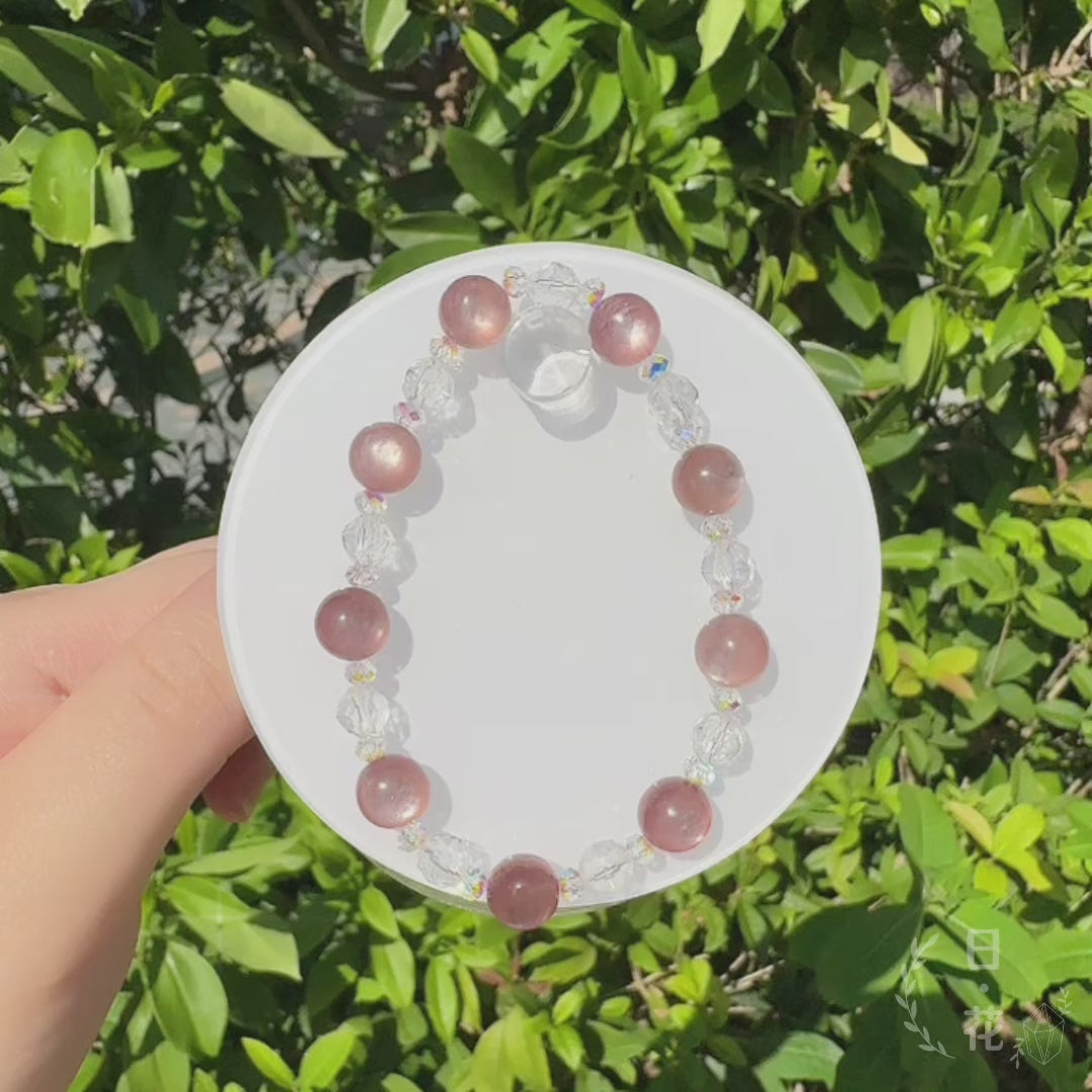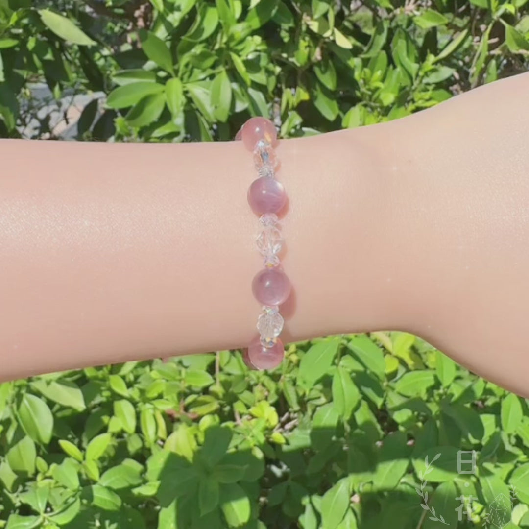 簡約粉紫鋰雲母雙貓眼8.5mm水晶手鏈