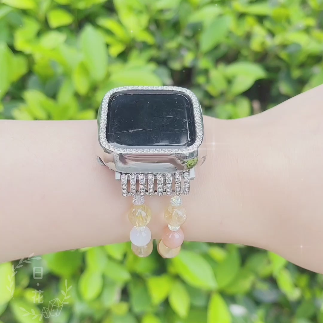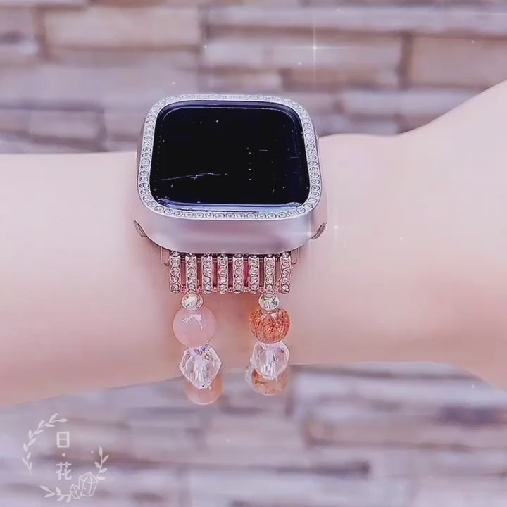 金太陽石粉橙月亮石7.7mm水晶錶帶