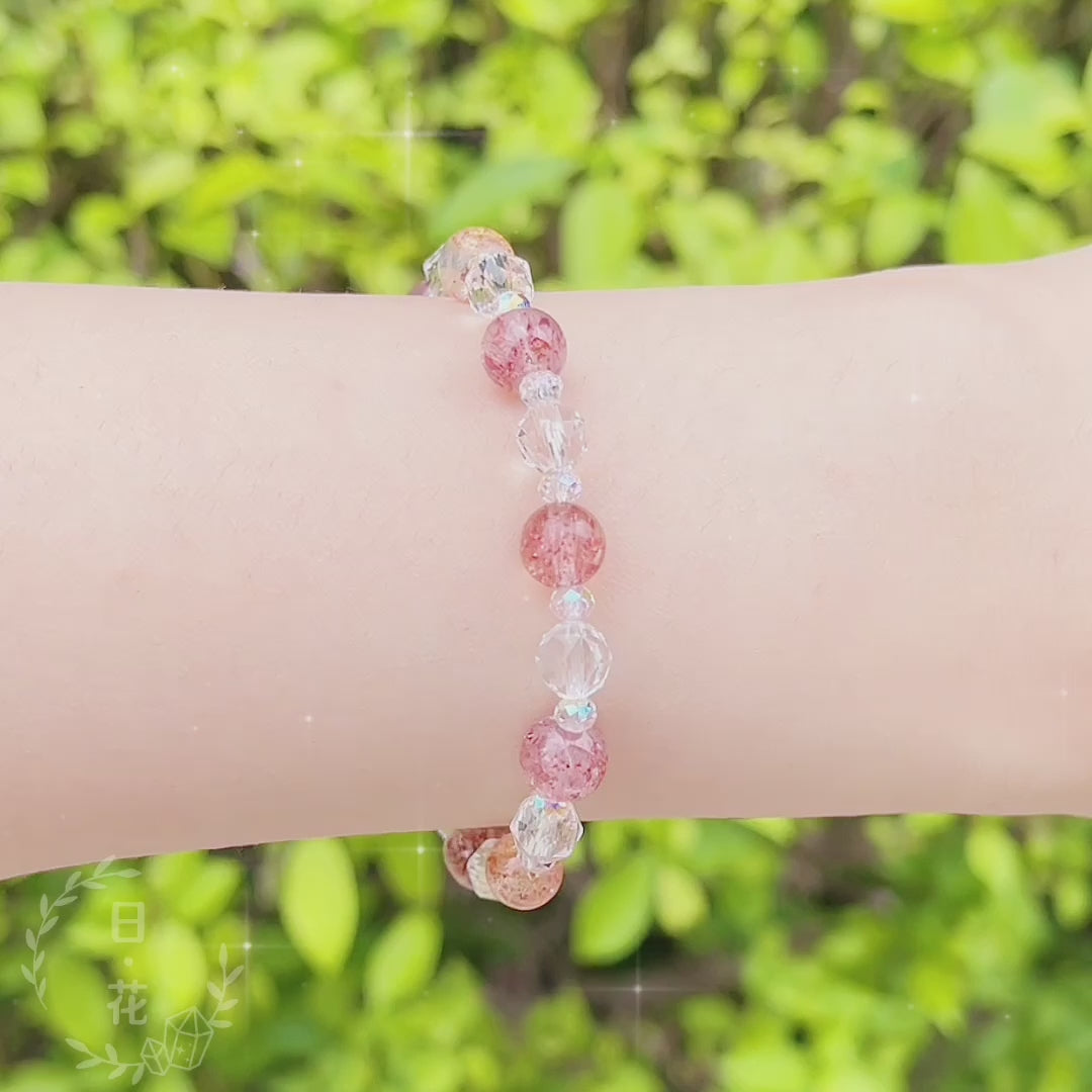 紅髮晶粉兔毛7.2mm水晶手鏈