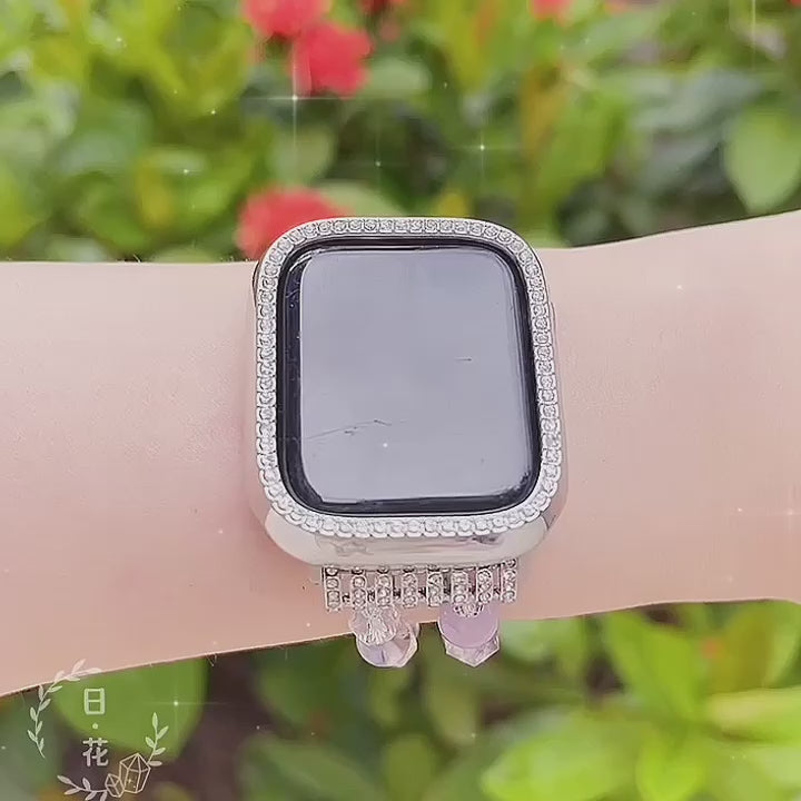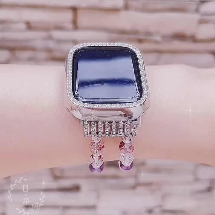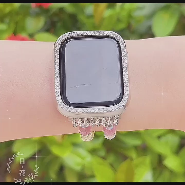 粉兔毛粉橙月亮石6.7mm水晶錶帶